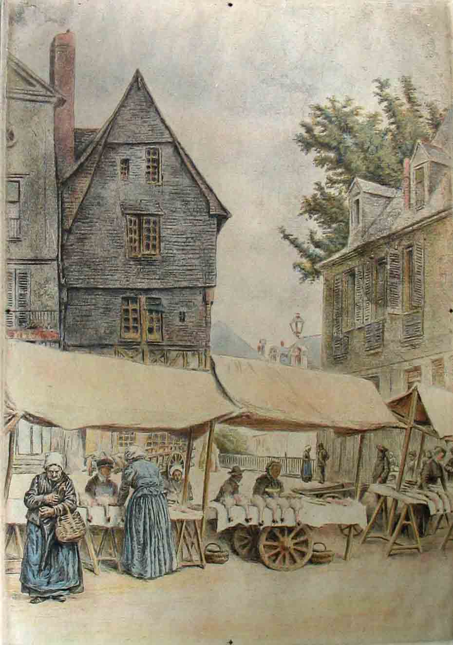 - Eaux-fortes, Le Mans, Marchés, Scènes de ville