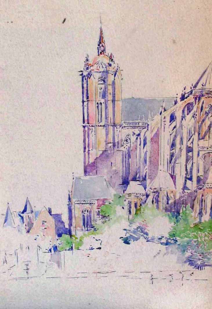 Le Mans : La Cathédrale Saint Julien, vue depuis la place des Jacobins Aquarelle Collection particulière