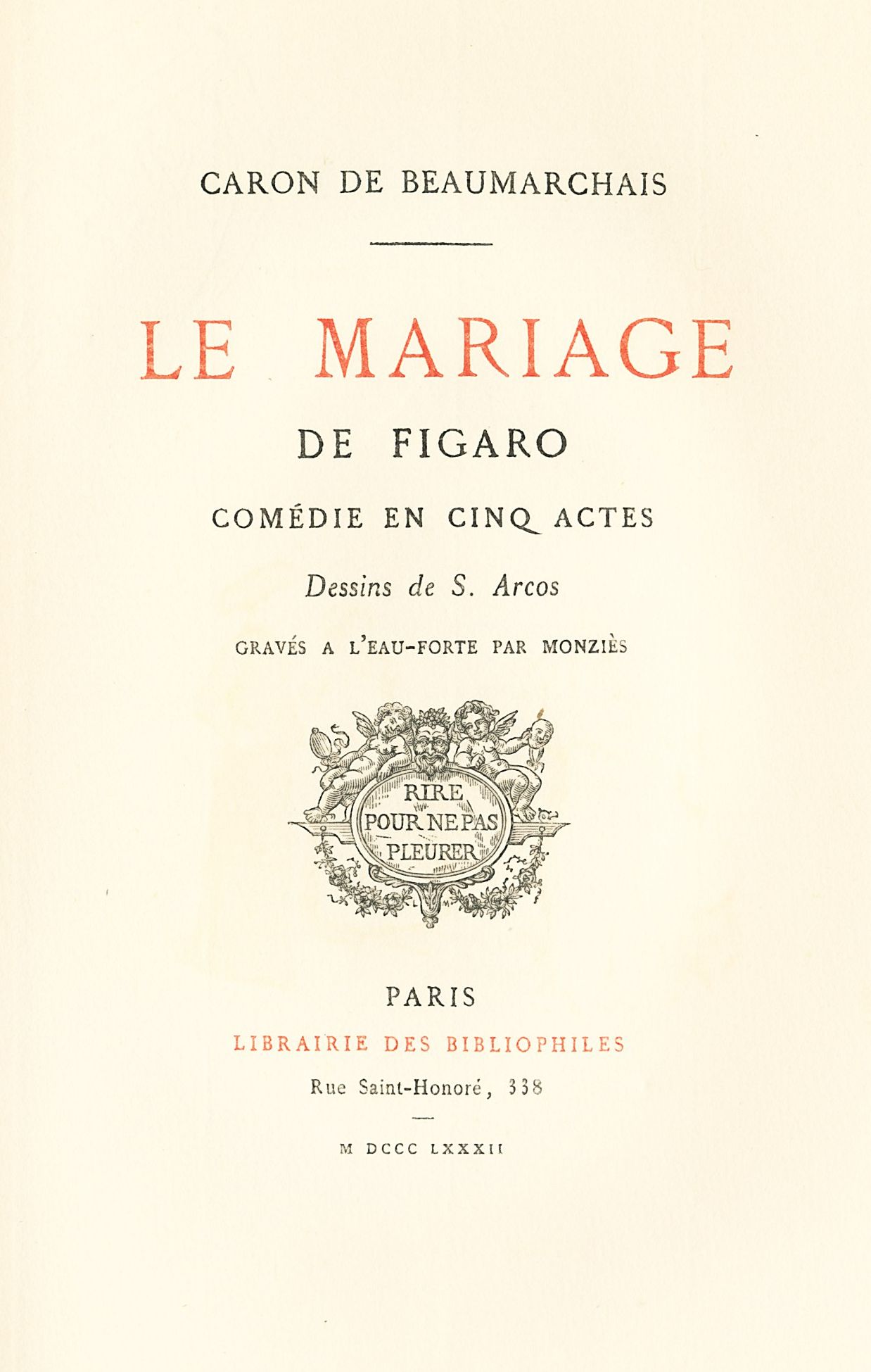 Le mariage de Beaumarchais par Caron de Beaumarchais, édition Jouaust, Librairie des Bibliophiles, 1882,