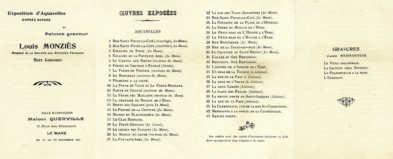 Exposition du 13 au 27 Novembre 1911 à la maison Querville au 11 rue des Minimes au Mans