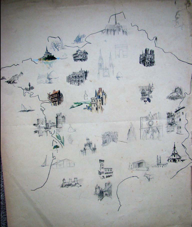 Esquisse Provinces de France, dessin aquarellé