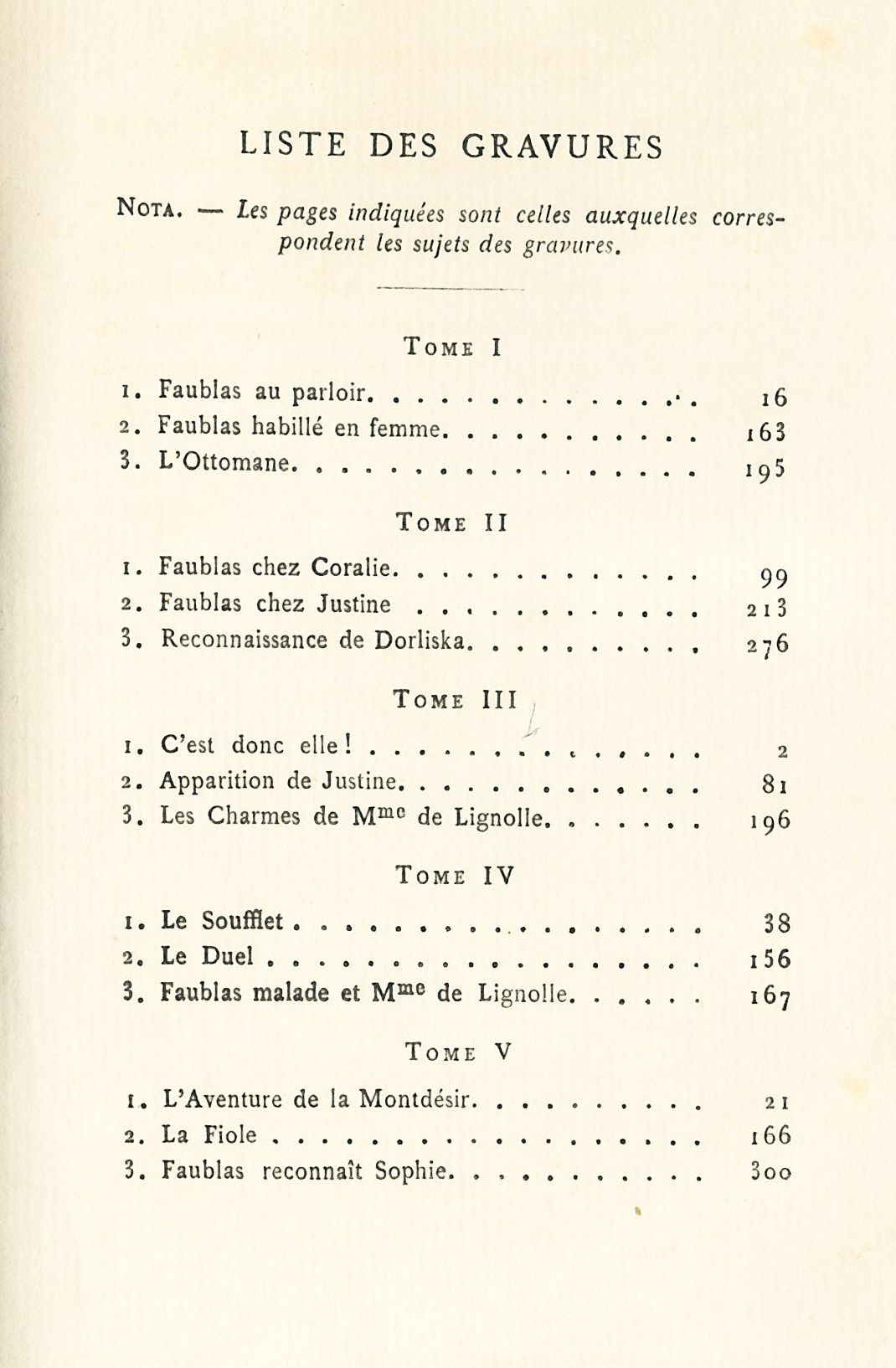 Liste des gravures,