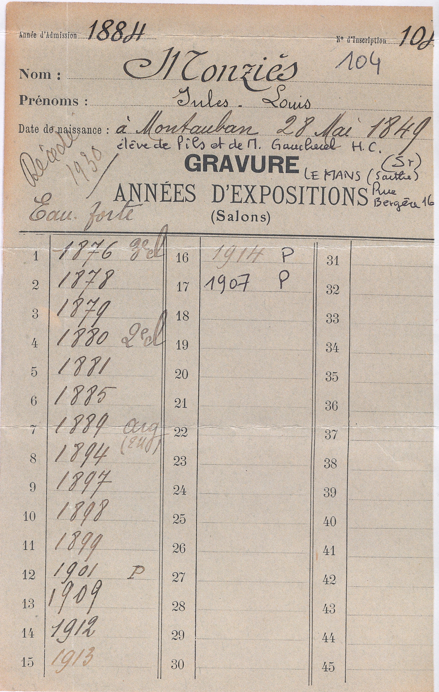 Participation de Louis Monziès aux Salons de la Société des Artistes