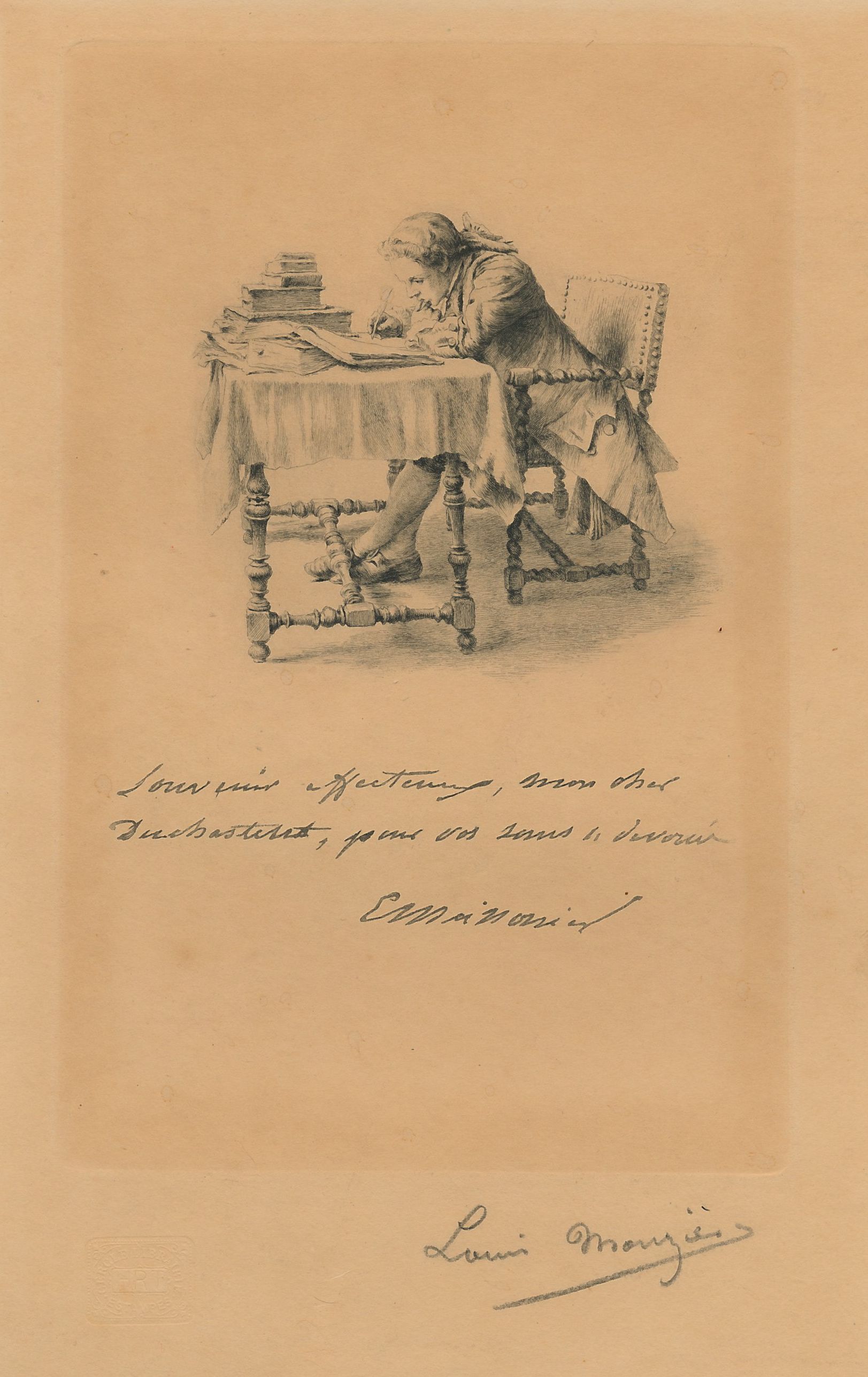 Meisssonier - Jeune homme lisant Gravure de Louis Monziès signée hors planche, Collection particulière