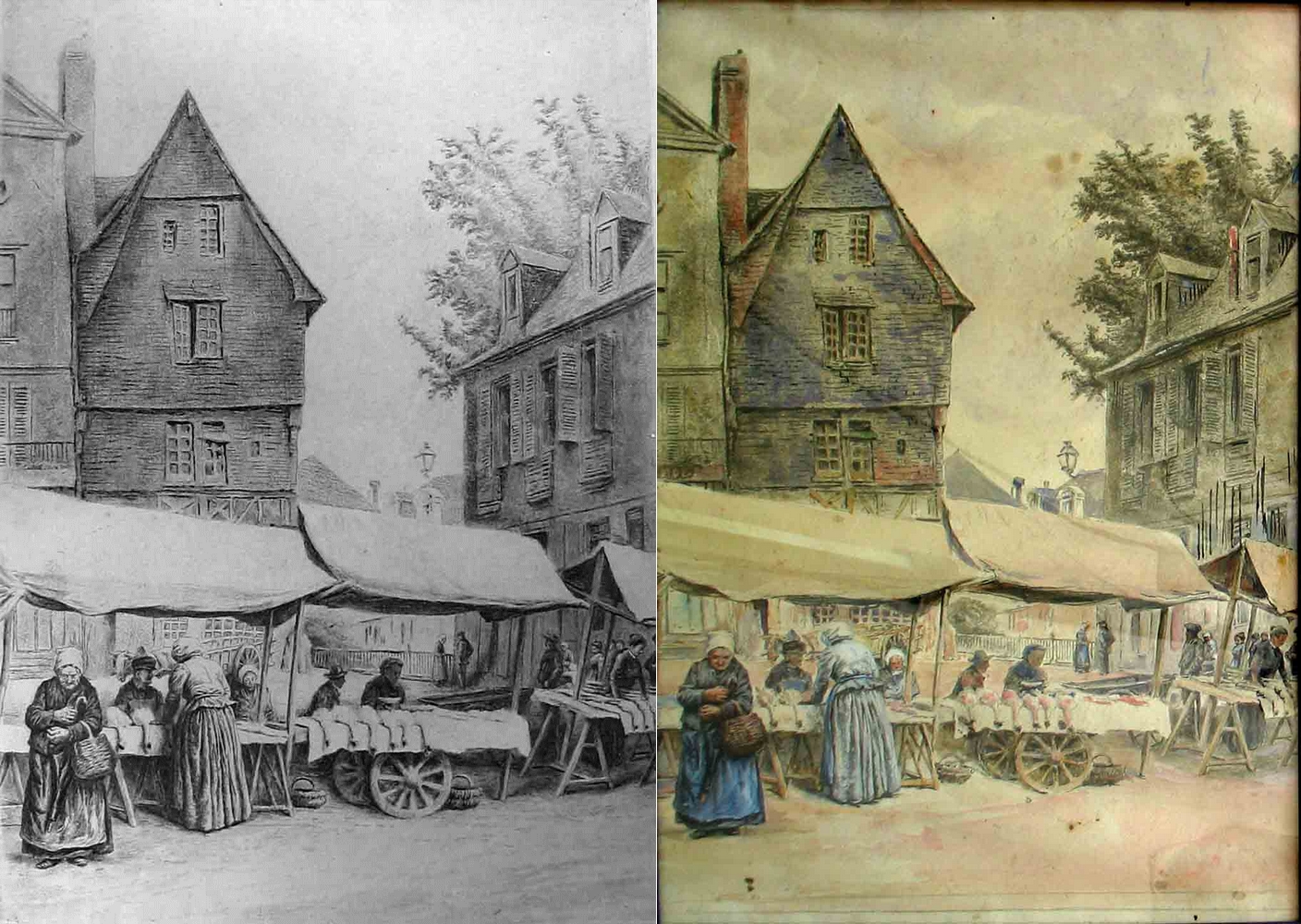 Gravure et aquarelle de Louis Monziès,